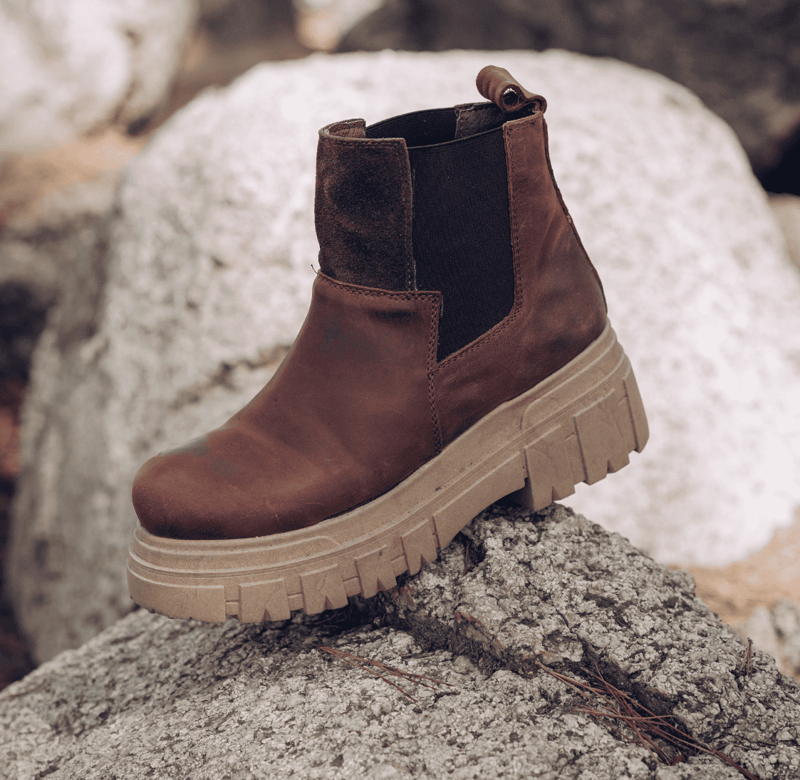 En el corazón del bosque, la artesana Elena descubrió un cuero café envejecido con aplicaciones de reno café, que resonaba con la esencia de la naturaleza. Decidió crear un par de botines y, para añadir un toque de magia, incorporó una planta rayo en la suela. Así nació "Canela Salvaje", un botín que capturaba la energía del bosque y la elegancia natural en cada paso.